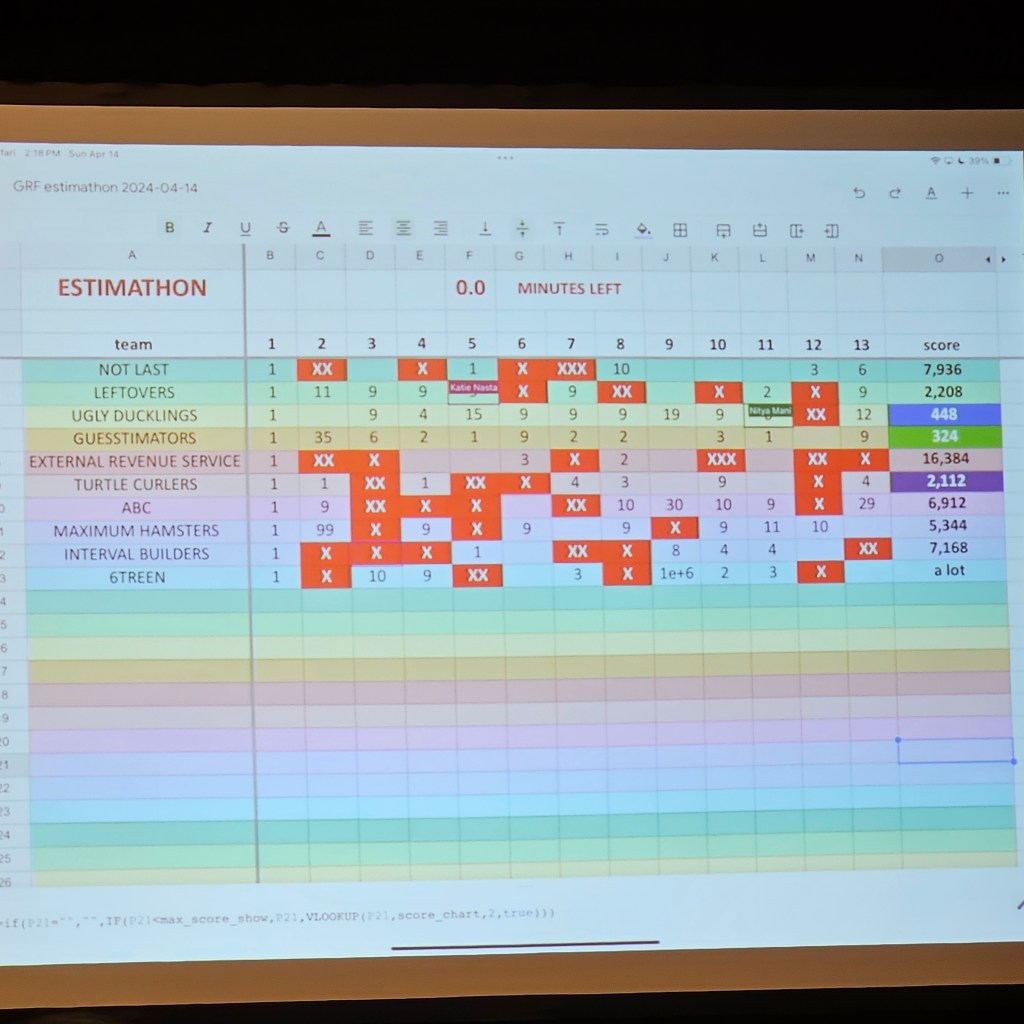隔天早上workshop得獎者給talk,難得有很親民的algebraic geometry 跟random graph但我好累QQ。下午estimathon 我們組好猛,有各種奇怪的知識,拿了第二名,但第一名超多1跟2疑似google仔(?)。我貢獻了一題Tajikistan的人口密度+各種eps,相信面積是台灣長度做成的正方形跟人口總數跟台灣差不多竟然是好的估計XDD。晚上去Lawn Club但主要都在吃喝跟社交。回程計程車直接塞在隧道裡30+分鐘,體驗了一波紐約交通,很悶的隧道加上頭痛我到飯店直接死去。