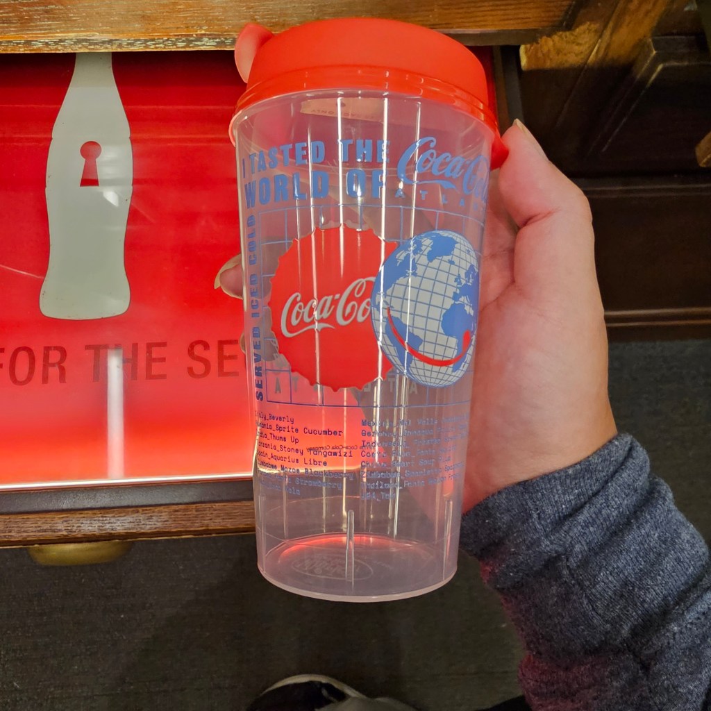 逛完之後去隔壁的可口可樂博物館,基本上就是在簡介可口可樂怎麼發跡,然後有一些像是怎麼弄出新口味之類的。前導影片硬要放洋蔥= =。最重要的部分是各種口味的試喝,我感覺大多數口味都還行,反正就是某種水果香味配上氣泡甜水。一開始講解的說酸梅湯口味很有挑戰性,但我喝了覺得蠻好喝的,就是甜一點然後有氣泡的酸梅湯,不知道哪裡能買到XD。然後有個毒瘤的是小黃瓜口味的雪碧,一整個喝不明白OAO
