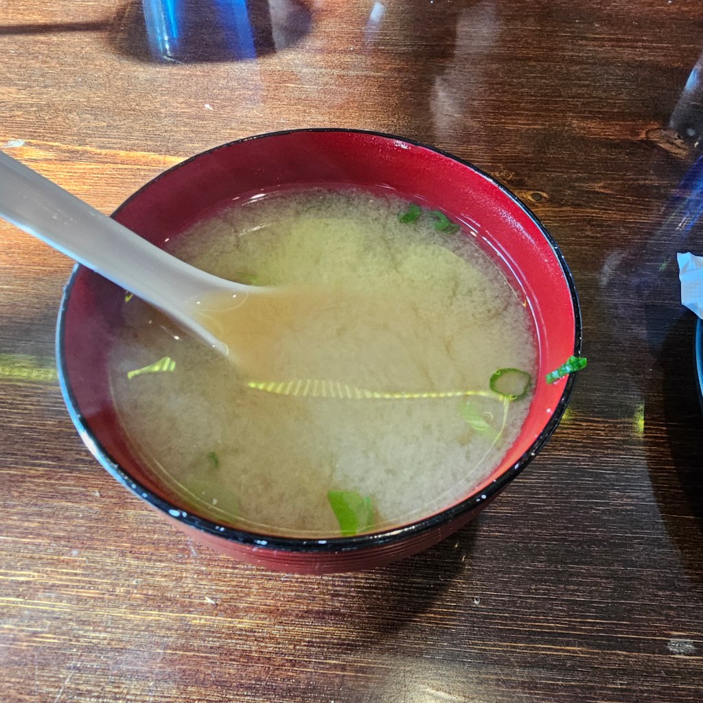 整個workshop只到禮拜五中午,禮拜五下午Nitya在那個演講廳defense,很酷XD (因為那是少數可以in person約到Yufei的場合)。聽完defense後我跟Zixuan和眼皮就跑去SF的Japan town,原本想吃禮拜三我沒吃到的日料,但發現他五點半才開,然後如果我們要六點出發去機場的話太趕。我們決定隨機選了一間看起來還行的豬排店,我們三個都點了豬排,再加上一個前菜炸豆腐。一開始味噌湯上來的時候我覺得湯味道還不錯,但豆腐怪怪的,就……是那種韓式豆腐,偏硬然後有點快變成臭豆腐的那種。此時我忽然想起,幹,我們是不是點了炸豆腐。不出意外的他也是用這種豆腐下去做,有夠糟糕。豬排也很沒救,很大份但很膩,味道也不對,但眼皮吃得很開心。由於我那天晚上很累,我也沒怎麼覺得他不好,但我沒吃完,後來越想越氣(?)。Zixuan吃到一半直接rage quit跑去買章魚燒XDD