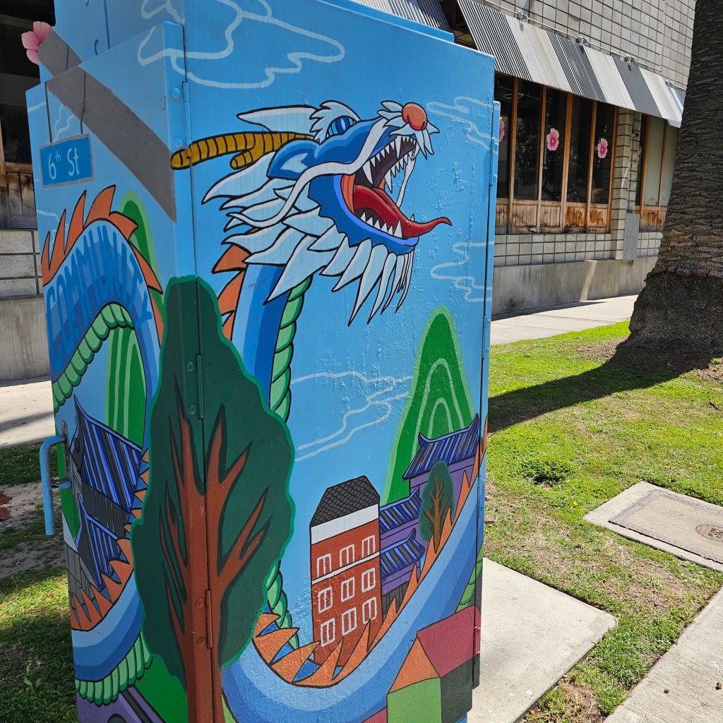 原本要在海邊吃午餐,但後來發現時間還早,於是沒規劃的兩個人就跑去比佛利山莊,再去K town吃午餐,설렁탕樸實但真的好喝,泡菜也很好吃。然後走很遠就為了喝波士頓也有的一芳,路上還看到超台變電箱,感覺是geoguessr會直接點錯那種(?)。眼皮那杯味道超怪。